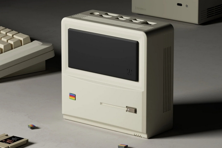 The Ayaneo Retro Mini PC AM01 5825U’s main appeal is the case that houses the whole thing, which takes on the likeness of the classic Apple Macintosh from back in the day, albeit in a much smaller size. It measures a compact 5.2 x 5.2 x 2.4 inches (width x depth x height), with a design that’s meant to sit on its back with the non-functional screen facing upwards, almost like someone tipped your Mac PC over. This makes it small enough to slide under monitors and hide behind other stuff on the desk, ensuring you can easily find space for it in any desk setup.